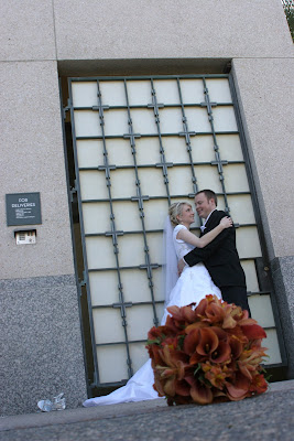 The bride chose a very classic look for her wedding black, red & white. The bride really wanted to bring out her African American roots so to incorporate we brought in some pheasant feathers and used them in her bouquet and for the grooms boutonniere. We had a candy station consisting of all red candies and also and ice cream sundae dessert station. Her cake was a red velvet cake with fondant overlay and accented by flowers and a black velvet ribbon. Cake creations by Raechal Carron.